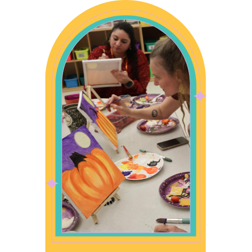 We’ll customize the experience to fit your group’s size and goals, whether it’s a collaborative canvas, individual paintings, or a themed creative challenge.